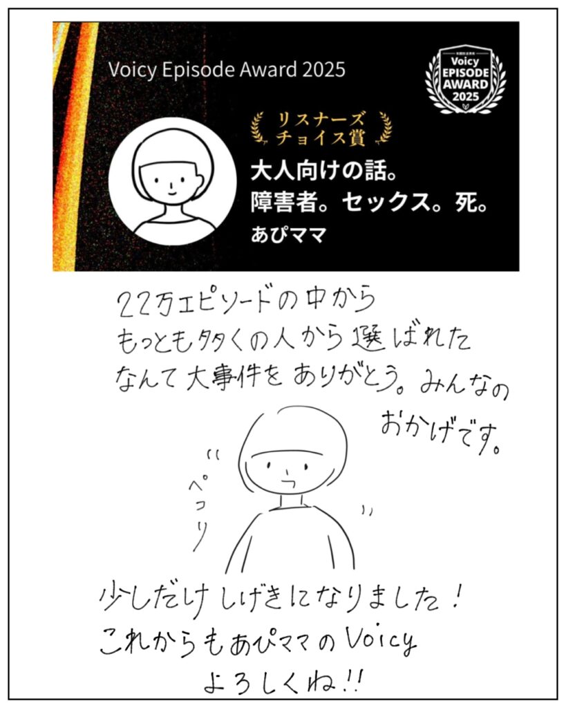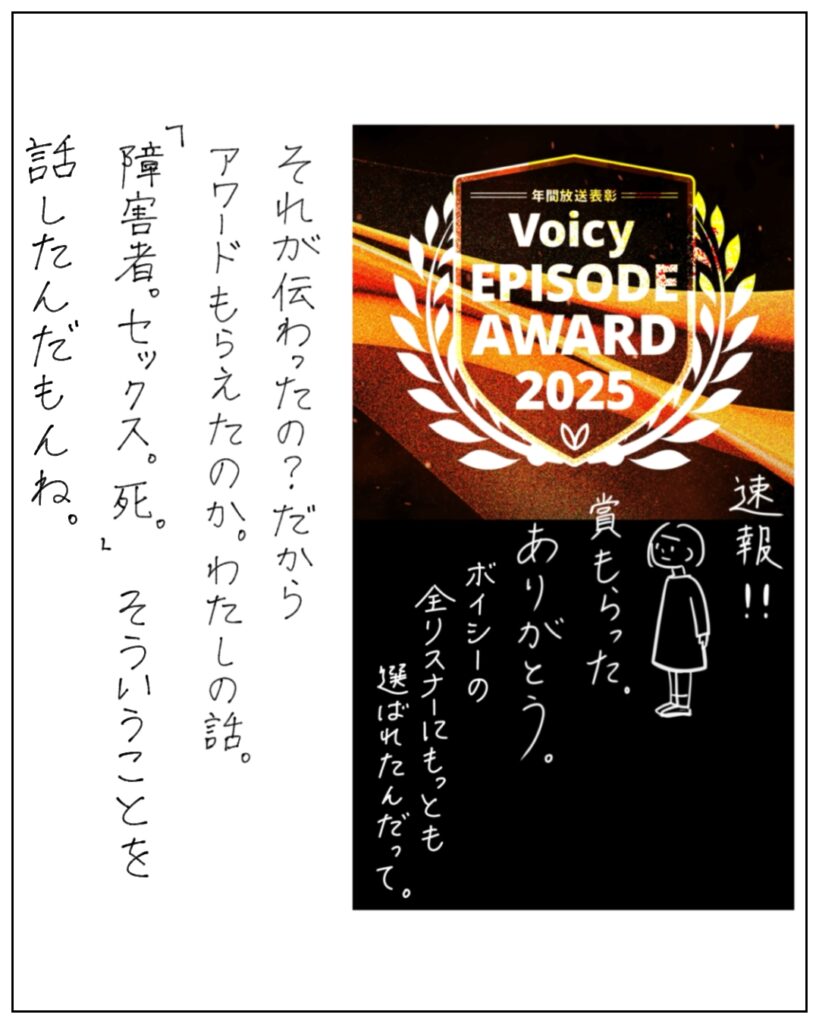 Voicy EPISODE AWARD2025を受賞しましたので、記録の漫画です。