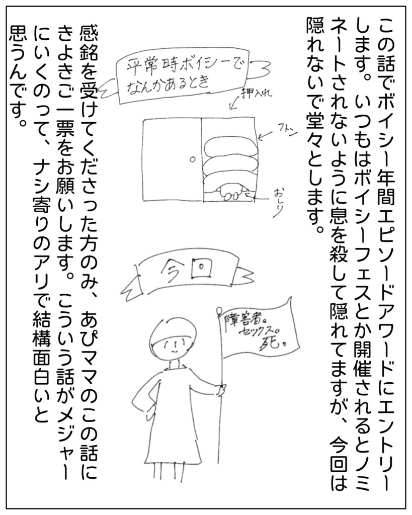 わたしの代表作Voicy「大人向けの話。障害者。セックス。死。」、これがおもしろかったと感じてくださった方は、わたしにチャンスを与えてくださいますか?